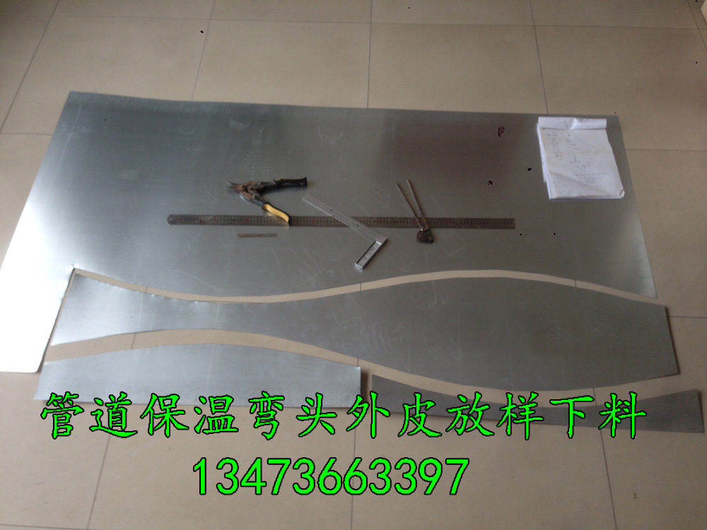 2、测量好周长之后建议大家保证金属板材搭边保持在50mm以上,如果保温材料材质是岩棉活玻璃棉、硅酸铝的话,建议镀锌板搭口在60mm左右。保温管道弯头处要多测量几处,以保证弯头样板选取的尺寸长度在最佳范围之内,来进行下料。